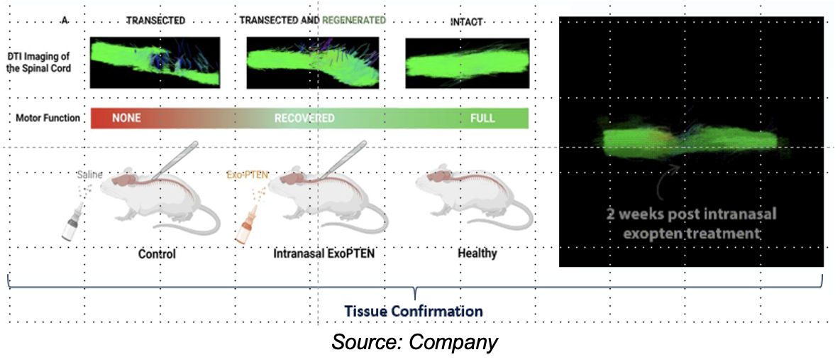 Management's goal is to develop ExoPTEN as a versatile treatment that can address a broad range of nerve injuries, including both acute SCIs, and optic nerve injuries. The technology has been validated in preclinical studies conducted on rats in 2018 and 2019. Key results include: