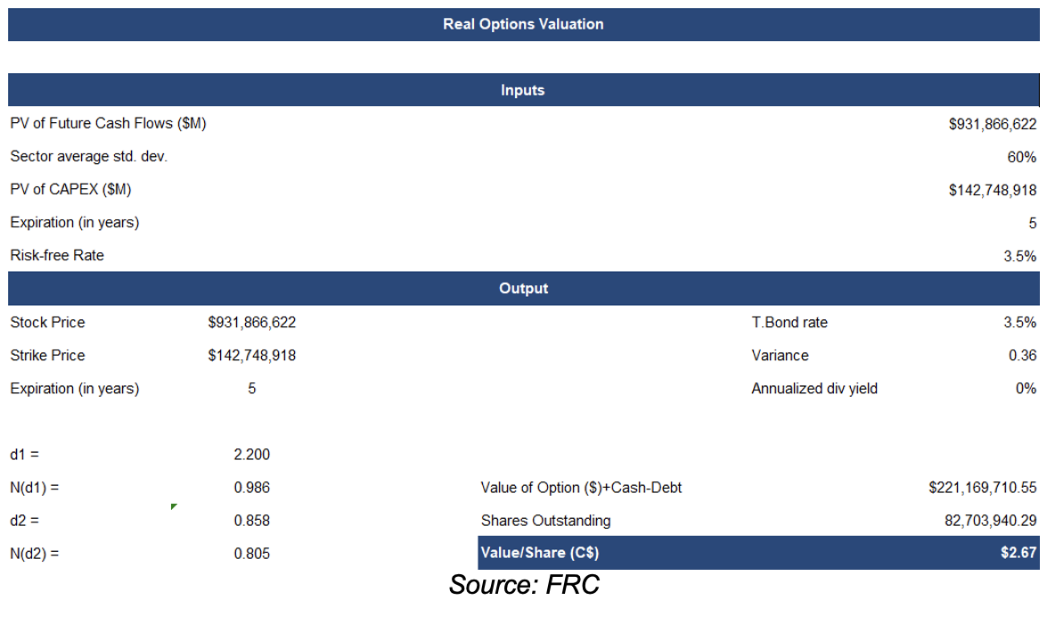 Our real options valuation is C$2.67/share