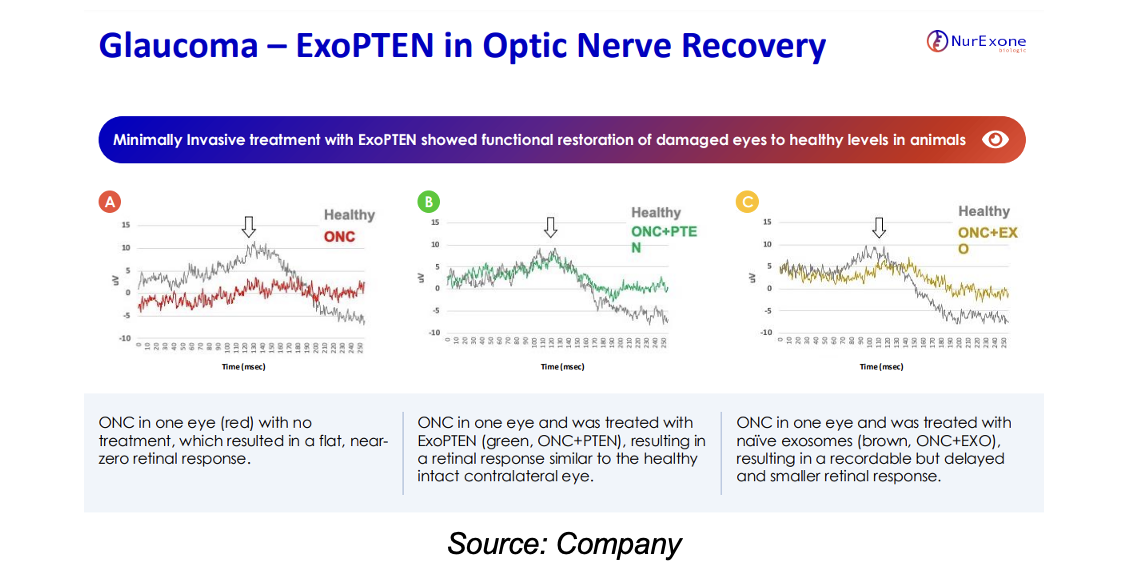 NurExone is also exploring the potential for treating glaucoma. Preclinical studies have demonstrated promising results in restoring vision following optic nerve damage—a key characteristic of glaucoma. Current treatments are primarily focused on preventing further damage, with limited options for regenerating or repairing damaged nerves.