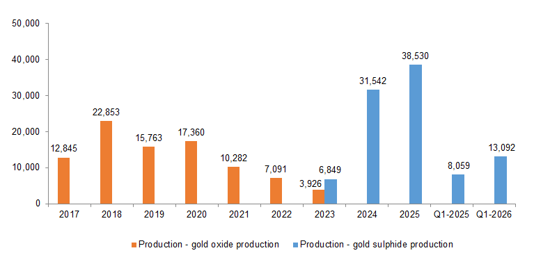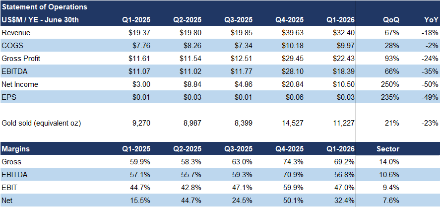 Owns a producing gold mine in Malaysia, and exploration projects in Western Australia Total compliant resources of over 1.2 Moz Au MMY has been processing sulphide materials since December 2022, producing a total of 90 Koz by September 2025 Q1-FY2026 production was up 62% YoY, and 6% QoQ, beating our estimate by 12%, driven by higher throughput and grades