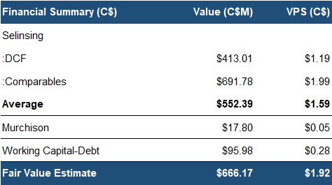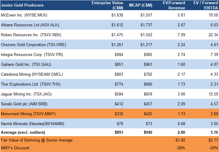 As a result, the balance sheet strengthened, with $70 M in working capital and no debt With production exceeding our forecasts and gold prices trending higher, we are raising our estimates across the board Sector multiples have risen17% since our November 2025 report, driven by higher gold prices MMY is trading at a 44% discount (previously 50%) to comparablejunior gold miners Applying sector multiples, we arrived at a fair value estimate of C$1.99/share (previously C$1.64/share) on the Selinsing mine Using a sum-of-parts valuation, we arrived at a fair value estimate of C$1.92/share (previously C$1.50/share)