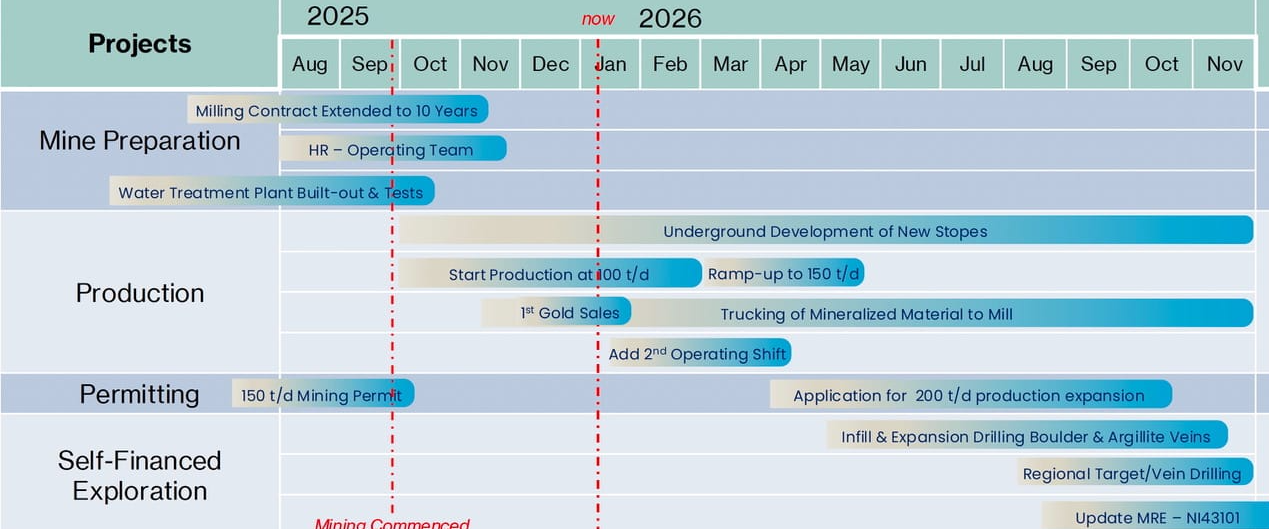 The company will reinvest operating cash to advance gold exploration . In H1 - 2026, it will drill more around the Boulder vein to see if the gold deposit can be extended, test a nearby target called the Argillite vein, and explore other areas across its large land package of about 22,000 hectares.