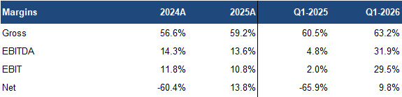 Q1 revenue rose 2% YoY, missing our estimate by 3%, driven by 14% growth in the flagship rental business, and partially offset by weaker education revenue due to lower international enrollments Rental revenue, which made up 67% of total revenue (Q1 2025: 60%), grew with contributions from recently completed projects