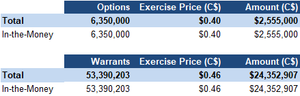 Can raise another C$27 M from in-the-money options/warrants AGX’s forward EV/Revenue is 3.37x (up from 2.79x) vs the sector average of 5.76x (up from 3.95x), a 42% discount Applying the sector average yields a comparable valuation of C$1.64/share (previously C$1.00/share)