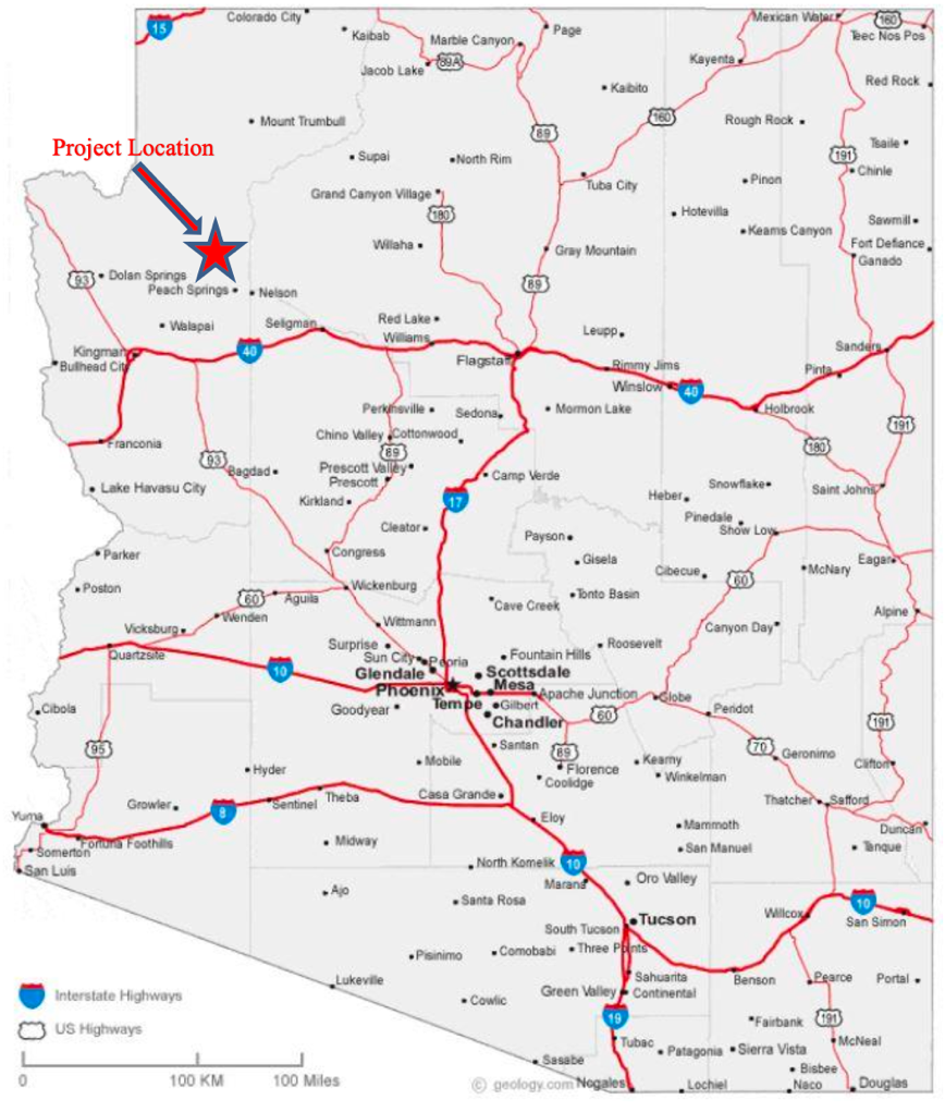Located 51 km northeast of the city of Kingman, with roads, power, and underground mine access already in place