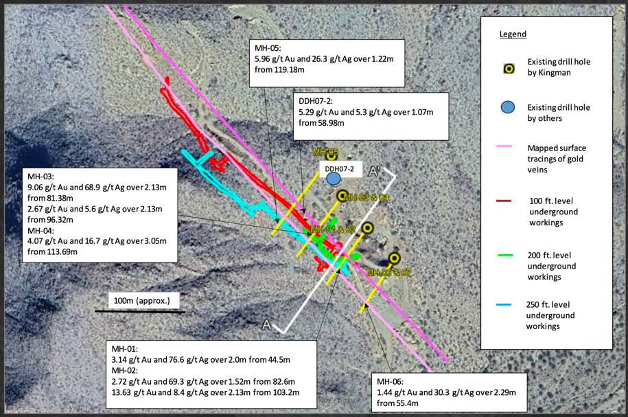 Kingman’s underground sampling , and a two-phase drill program, found extremely high-grade veins, with 688 g/t gold and 468 g/t silver over 0.18 m , and 252 g/t gold and 341 g/t silver over 0.46 m . These grades are far above typical high-grade mines (usually 5–10 g/t gold).