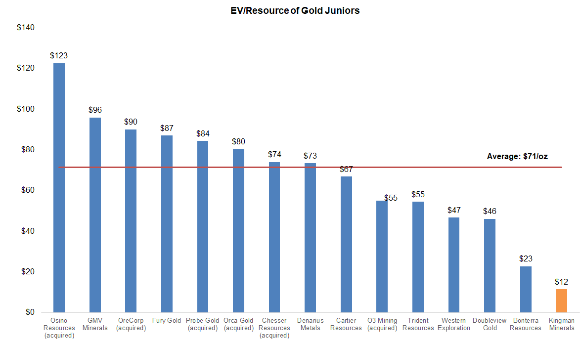 KGS is trading at $12/oz gold equivalent (AuEq) resources vs a comparables average of $71/oz