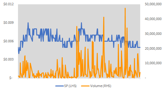 Our DCF model returned a fair value of $0.03/share
