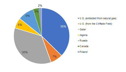 Top producers: U.S. 45%, Qatar 35% of global helium supply