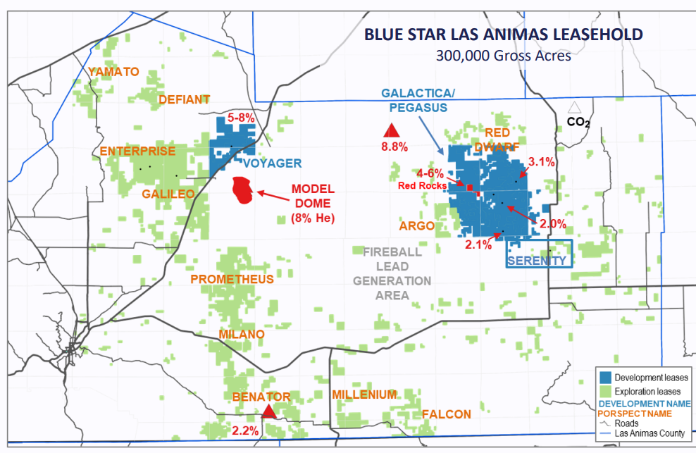 Three primary helium projects, and one CO2 project in Las Animas County, Colorado