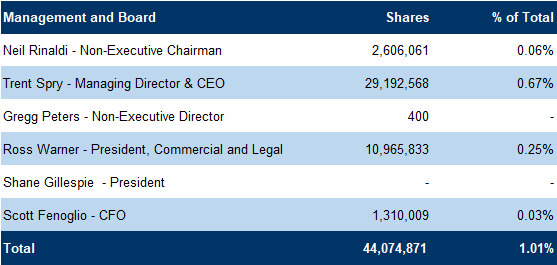 Brief biographies of the management team and board members, as provided by the company, follow: