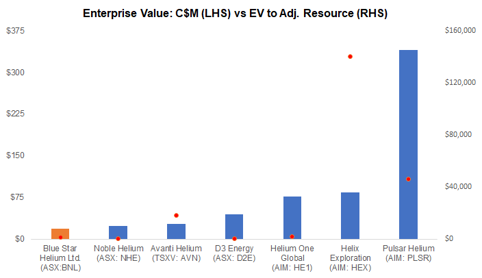 BNL is trading at just $1,625 vs an average EV to adjusted resource of $7,502 for comparable helium juniors