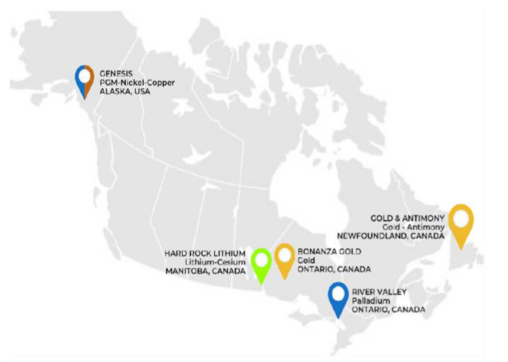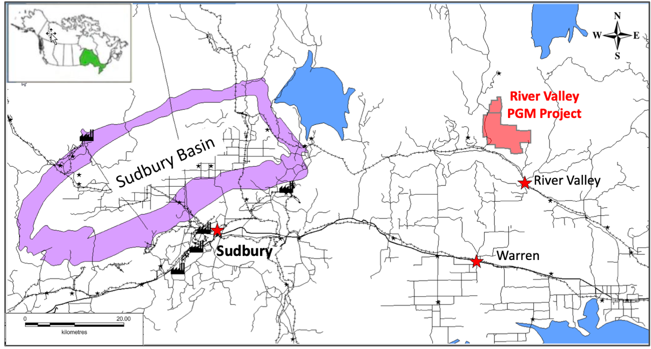 This advanced-stage project spans 107 km² in Sudbury, a world-renowned Ni-Cu-PGM mining district , with major processing facilities.