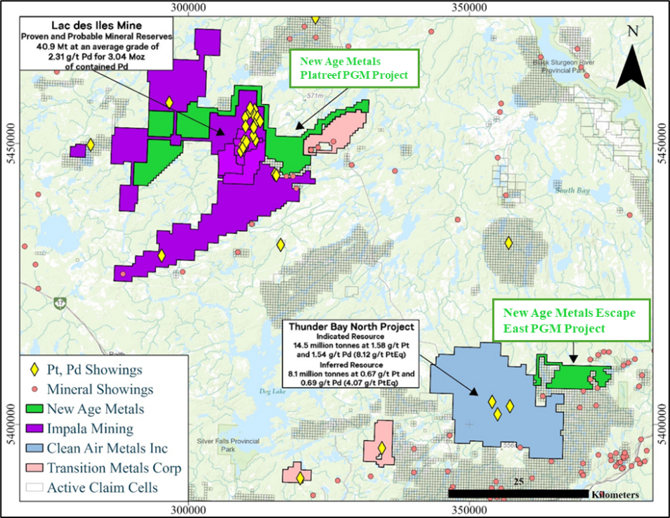 This 4,000-hectare (9,880 acres) PGM–Ni–Cu exploration property is also located within the Lac des Îles Igneous Complex, and adjacent to the advanced-stage Thunder Bay North project controlled by Clean Air Metals (TSXV: AIR/MCAP: $21M).