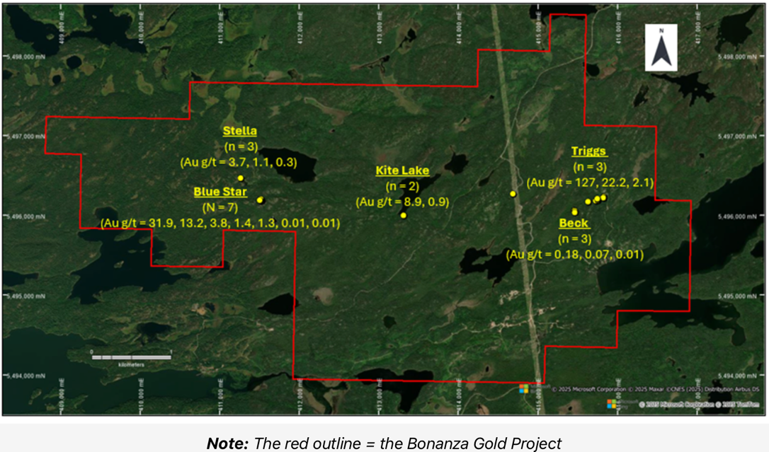 Bonanza Gold Project, Ontario - 2025 Sampling Highlights
