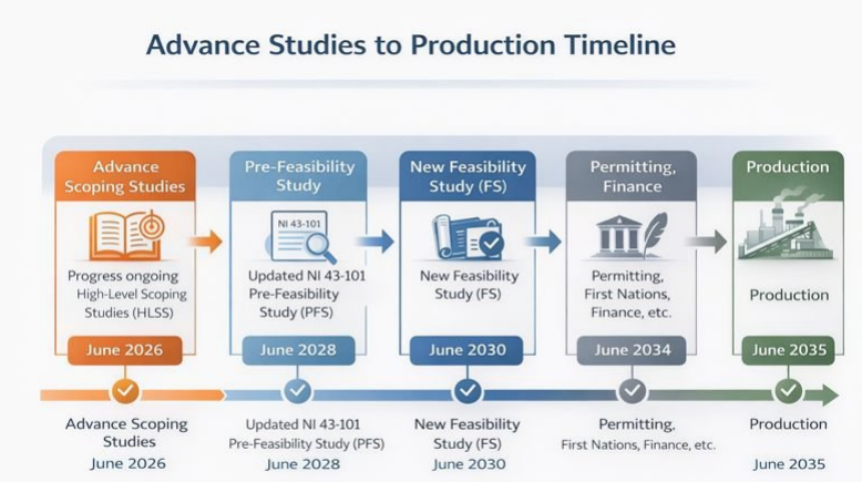 MQM aims to complete an updated feasibility study (a detailed, independent economic study) by 2028, with the long-term objective of moving into production within 10 years