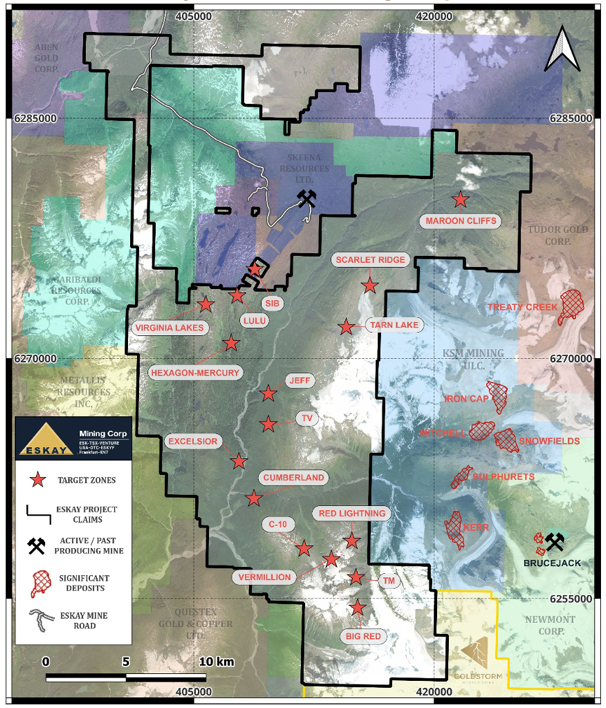 The 52,600-hectare project is located within the Golden Triangle, one of the world’s richest areas for precious metals. The project is near the Eskay Creek mine, now owned by Skeena Resources ( TSX: SKE ) . From 1994 to 2008, Eskay Creek produced 3.3 Moz of gold , and 161 Moz of silver, at exceptional grades (45 g/t Au, 2,224 g/t Ag) , with unusually low cash costs of just US$60/oz. These results highlight the potential of projects in the area, and proximity to major mines makes a successful discovery an attractive acquisition target.