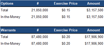 Can raise up to $21M from in-the-money options and warrants