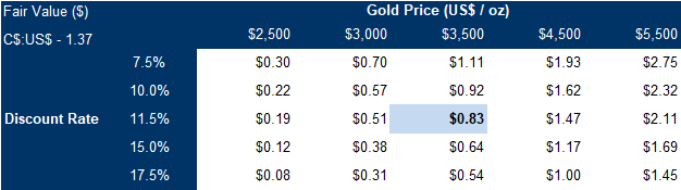 Our valuation remains highly sensitive to gold prices