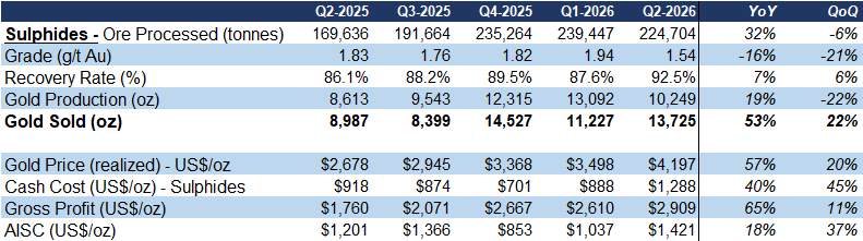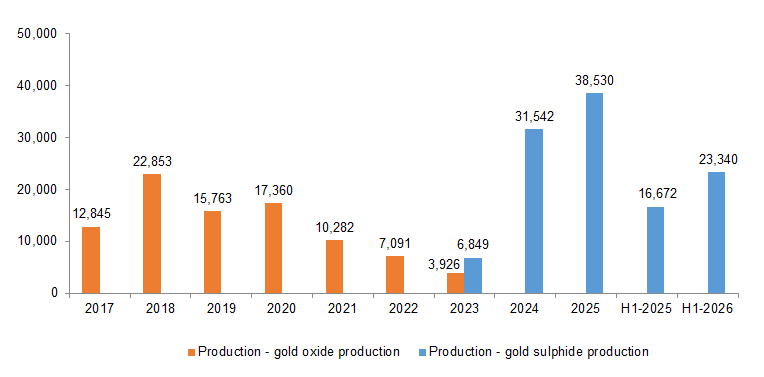 MMY has been processing sulphide materials since December 2022, producing a total of 100 Koz by December 2025