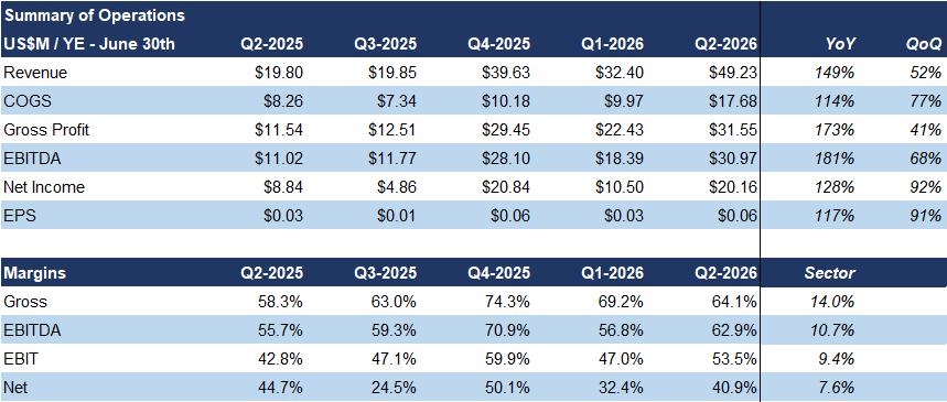 Driven by higher gold prices, Q2 revenue rose 149% YoY, EBITDA +181%, and EPS +117%