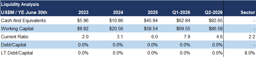 As a result, the balance sheet strengthened, with $87M in working capital, and no debt