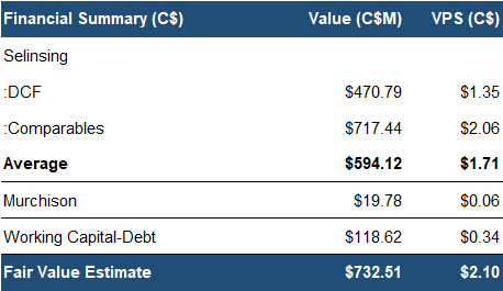 Using a sum-of-parts valuation, we arrived at a fair value estimate of C$2.10/share (previously C$1.92/share)