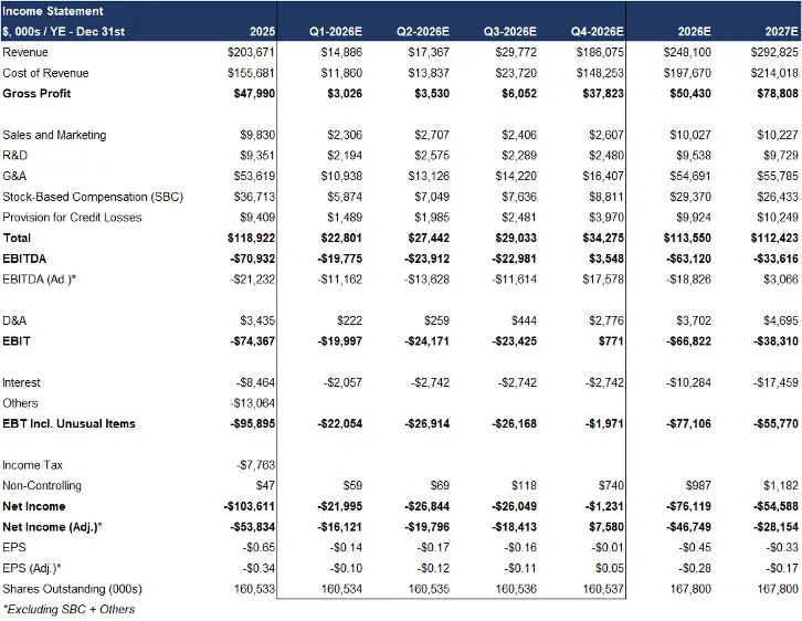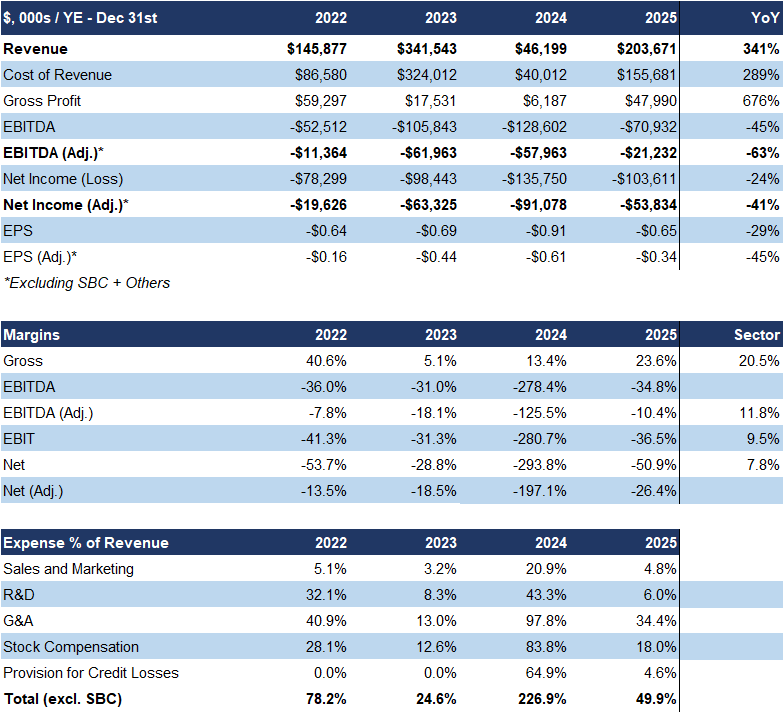 2025 revenue, dominated by third-party deployment projects, up 341%, beating our estimate by 7%