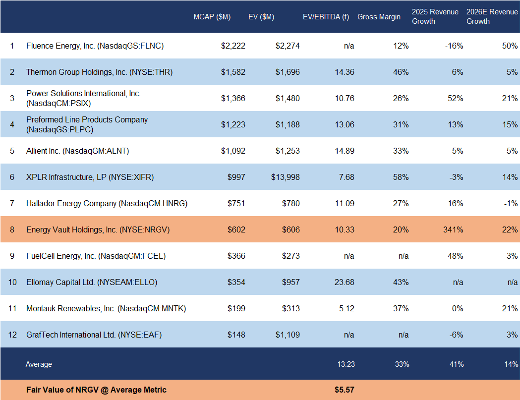 We are reiterating our BUY rating , and adjusting our fair value estimate from $5.19 to $6.05/share (the average of our DCF and comparables valuations). NRGV delivered a strong 2025, with revenue and EPS beats, a growing backlog, and positive Q4-EBITDA, underscoring momentum across both third-party deployments, and the Asset Vault platform. With the stock trading at a 22% discount to peers , and our increased DCF valuation, we see meaningful upside potential .