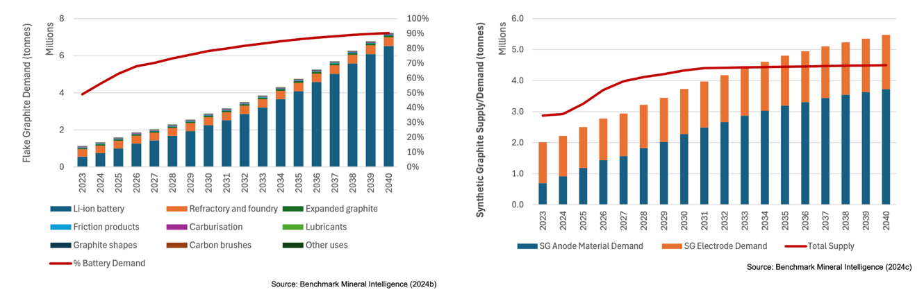 The graphite market, currently in surplus, is expected to shift to a deficit by decade’s end, widening thereafter, suggesting a strong long-term price outlook