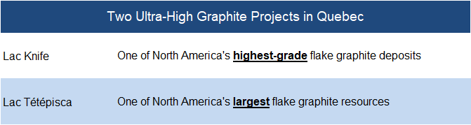 Hosts one of the largest graphite resources in North America — almost five times larger than the company’s Lac Knife deposit