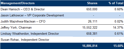 Management and board own 16% of the company’s equity