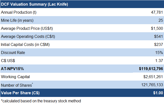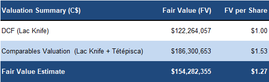 This valuation only includes LAC Knife, being the advanced-stage asset, and does not include Tétépisca