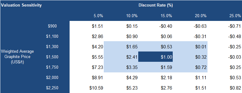 Our valuation is highly sensitive to graphite prices