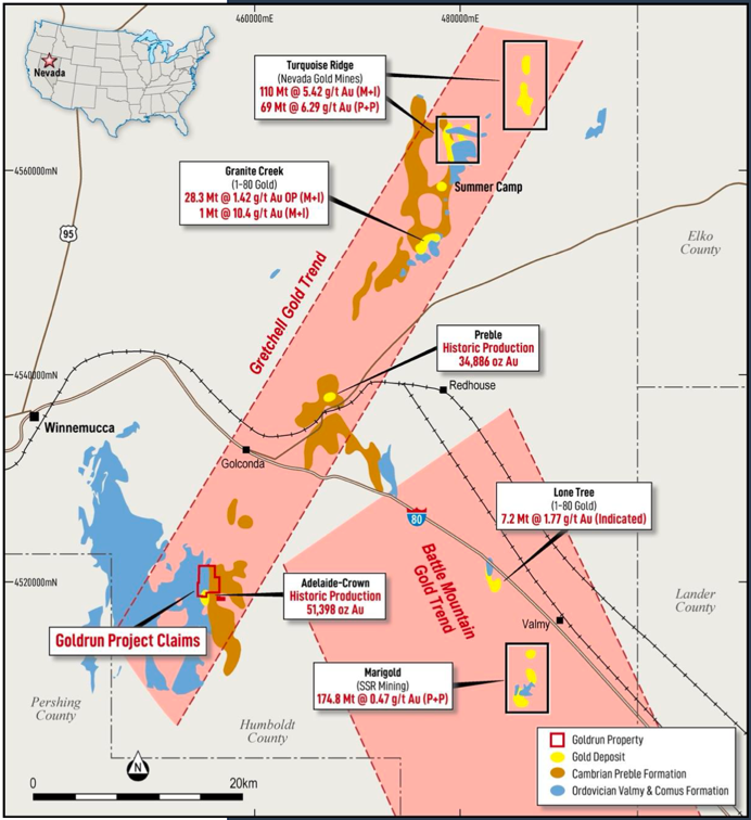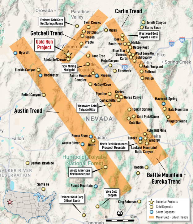 Gold Run sits on Nevada’s Getchell Trend, immediately west of the prolific Carlin Trend