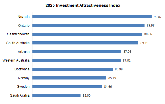 In 2025, Nevada was ranked the most attractive mining jurisdiction in the world, as per the Fraser Institute’s survey of mining and exploration companies