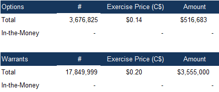 None of the outstanding options and warrants are in-the-money