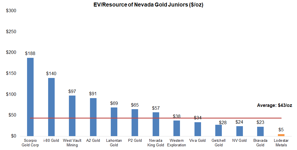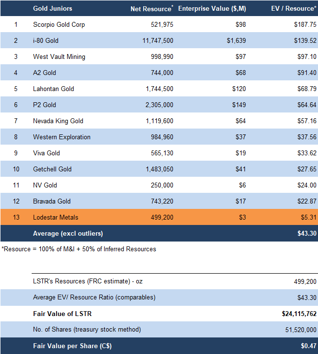 LSTR is currently trading at just $5/oz based on our preliminary estimate on Gold Run, compared with a comparables average of $43/oz, an 88% discount