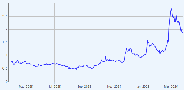 Price and Volume (1-year)