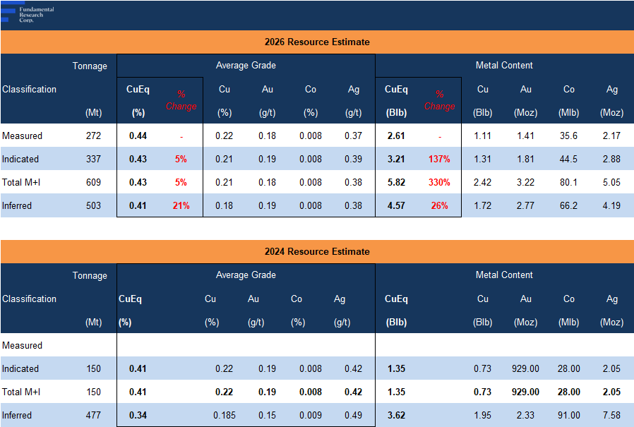 The latest resource estimate incorporates drilling completed since the 2024 estimate , and is based on 97 drill holes totaling 49,548 m, up from 71 holes totaling 30,000 m in the prior estimate.
