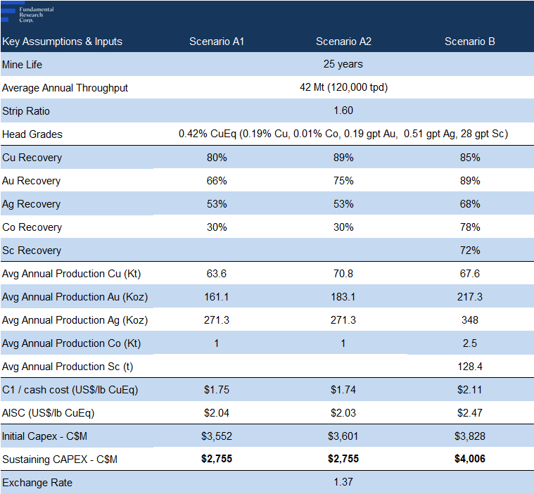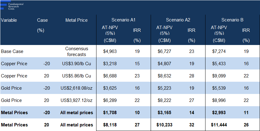The study returned an AT-NPV5% of $7B, with an IRR of 19%, using consensus metal prices