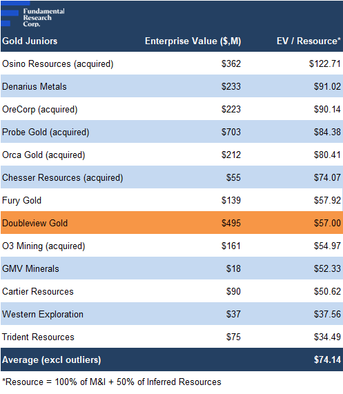 Applying the comparables’ average to DBG’s updated resource, we arrive at a fair value estimate of $2.61/share (previously $1.64/share)