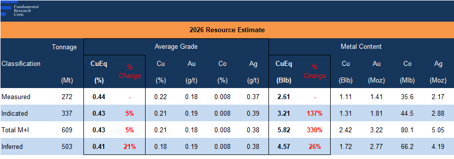 While grades are consistent with similar-style deposits (known as porphyry projects, typically large with relatively low grades), we note that the 10+ Blbs CuEq resource is notable, exceeding the usual range of 2–6 Blbs CuEq, implying potential for a longer mine life, and superior economics