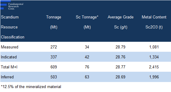 Based on spot prices, we note that gold accounts for 44% of resources, followed by copper (39%), scandium (10%), cobalt (6%), and silver (1%)