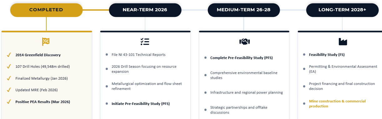Next steps: resource upgrade and expansion, metallurgical tests, and a PFS, demonstrating management’s proactive approach to further de-risk the project