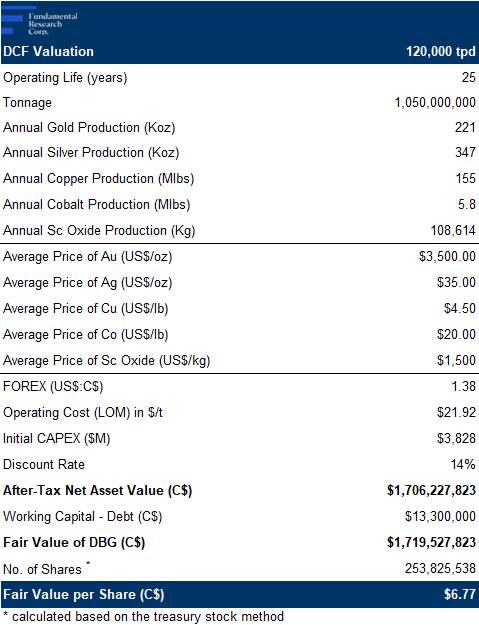 Applying the comparables’ average to DBG’s resource, we arrive at a fair value estimate of $4.15/share (previously $2.61/share)