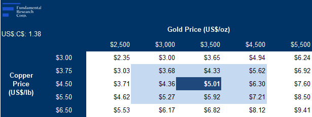 AT-NPV5% of $7B, with an IRR of 19%, using $4.88/lb copper (spot: $6.09/lb), and $3,273/oz gold (spot: $4,741/oz)
