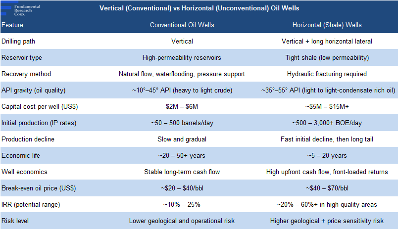 Conventional wells tend to generate lower, but more stable returns, while shale wells require higher upfront costs, but can deliver higher, more variable returns with greater risk