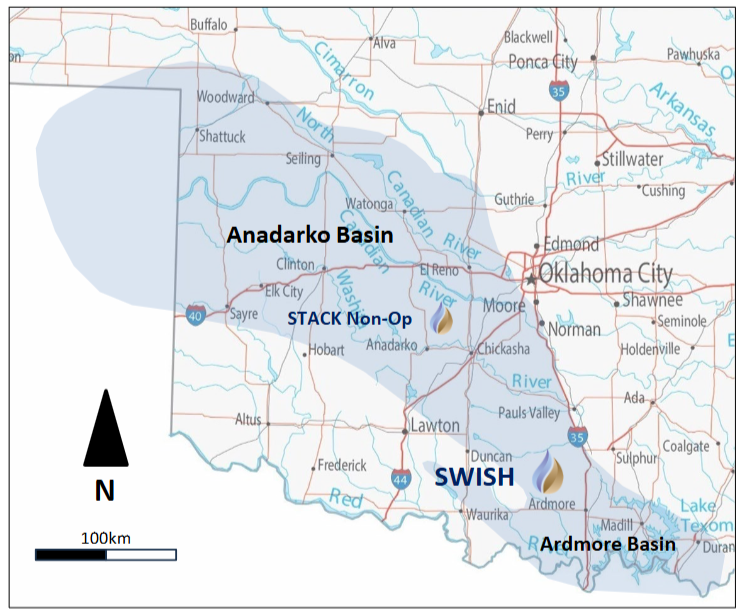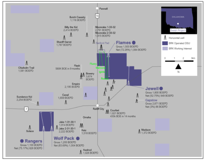 BRK holds over 5,000 acres in the SWISH play, a newer, less developed extension of the established STACK (central Oklahoma), and SCOOP (south-central Oklahoma) shale developments.