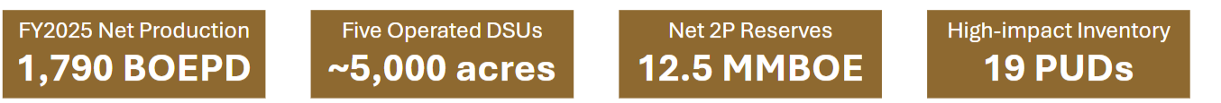 b) A non-operated working interest (~16% Net Revenue Interest) in eight wells within the SWISH play, operated by Continental Resources; online since early 2025. This revenue stream contributes to only a minor portion of the company’s overall production.